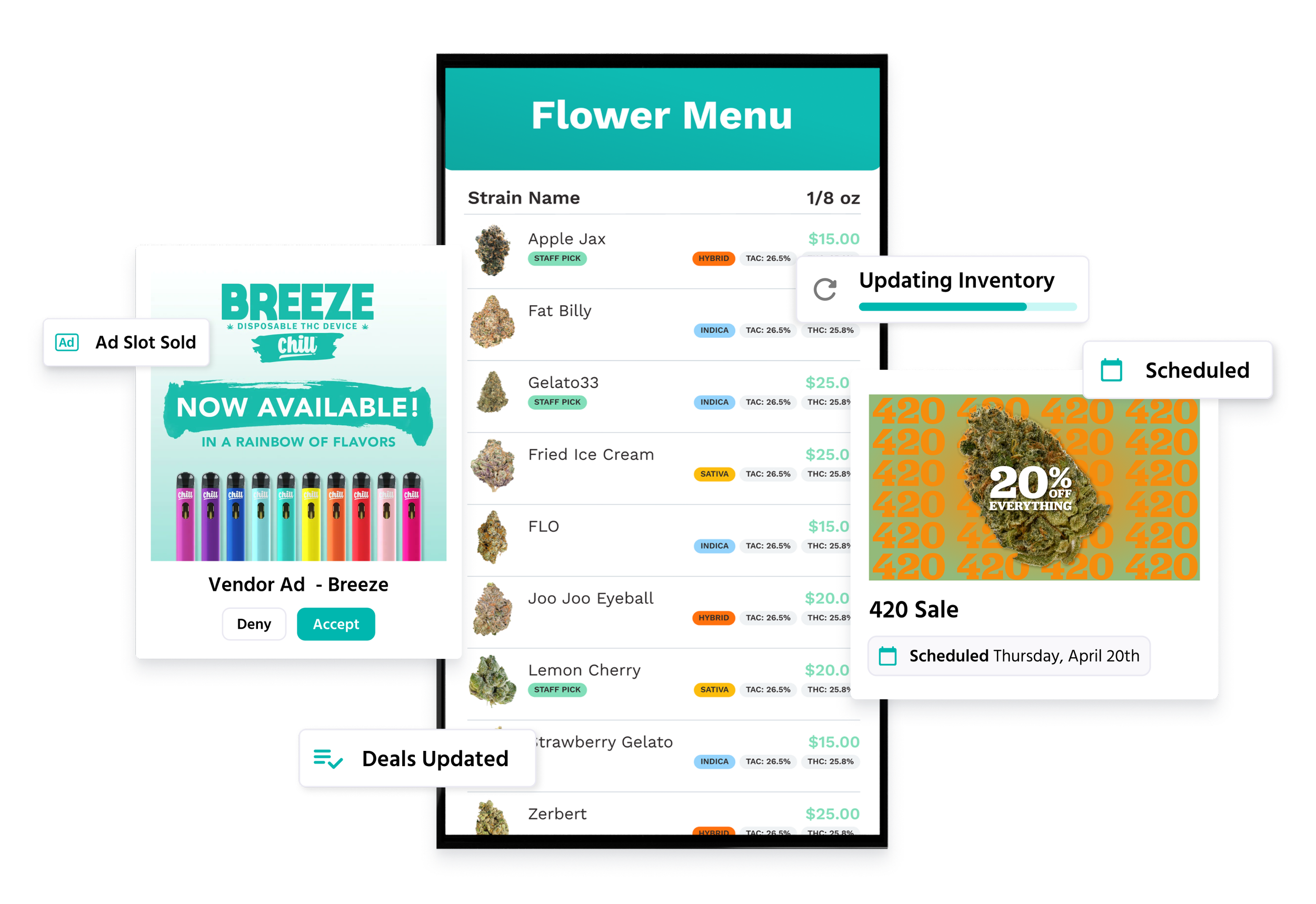 From live digital menus to AI-powered creative tools, SKOOP is transforming how cannabis retailers connect with customers in-store. With real-time inventory sync, customizable signage, and automated brand integrations, SKOOP helps retailers boost engagement and sales—while keeping their experience uniquely their own.